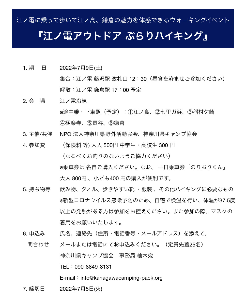 (1)神奈川県キャンプ協会(PACK)固有会員の入会に関する申し合わせ
